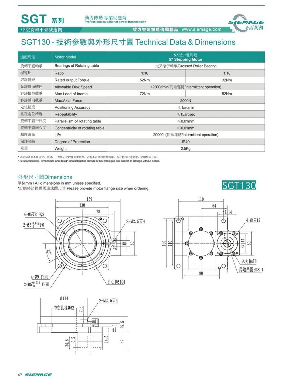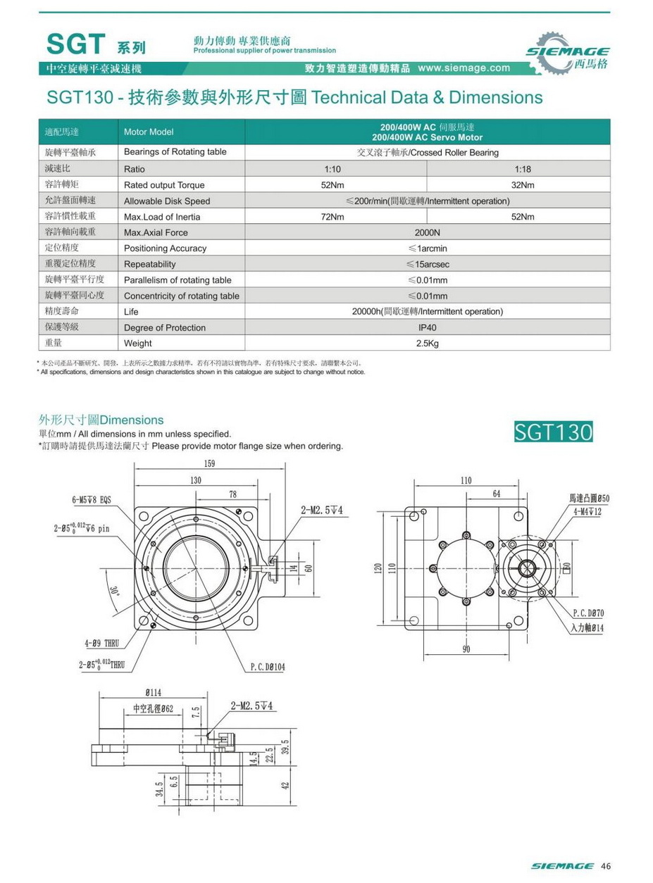 西馬格中空平臺減速機SGT130,siemage中空平臺可配各品牌200/400W伺服電機,伺服馬達,各廠家57型步進馬達,5步進電機。減速比有1:10,1:18等