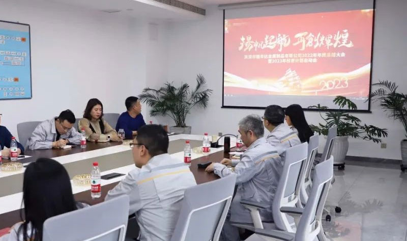 2023年1月12日,天津市瑞豐達金屬制品有限公司組織召開“揚帆起航·再創輝煌”——2022年年終總結大會暨2023年經營計劃啟動會。公司領導張總、王總、公司各部門負責人出席本次會議。