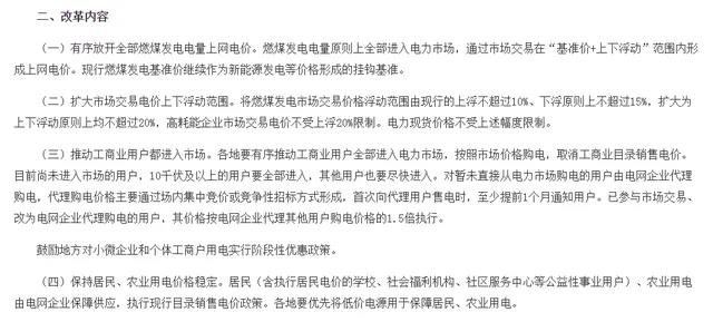 ? ? ? 10月12日,國家發改委印發《進一步深化燃煤發電上網電價市場化改革的通知》,明確表示燃煤發電電量原則上全部進入電力市場,通過市場交易在“基準價+上下浮動”范圍內形成上網電價。市場交易電價浮動范圍由現行的上浮不超過10%、下浮原則上不超過15%,擴大為上下浮動原則上均不超過20%,高耗能企業市場交易電價不受上浮20%限制,并全面推動工商業用戶進入市場,有序推動尚未進入市場的工商業用戶全部進入電力市場,取消工商業目錄銷售電價,促進工商業企業購電全部實現市場化,從即日起一個月內為市場化交易的過渡期,從12月起,企業購電全面采用市場化電價來結算。