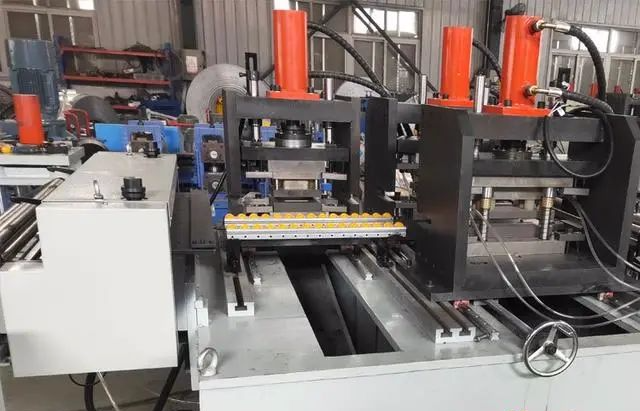 上料開卷→校平→伺服電機送料→沖床沖孔→冷彎成型→校正校直→液壓定尺切斷→收料(生產線自動連續工作)