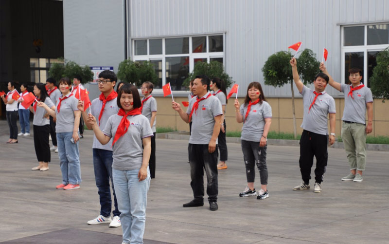 瑞豐達全體員臉上貼著國旗標志,手拿中國國旗并佩戴紅領(lǐng)巾,滿面春風,神采飛揚。